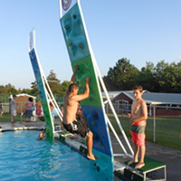 Does the size of your group require one pool? Or two? Or three or four? Elbow Lane offers four heated pools! Want more than just swim fun? Our pools are equipped with three Aqua Climb stations, a large waterslide and a small waterslide for even more fun! Depth of our pools range from nine feet in our big pool to 2 feet in the shallowest. There will be two certified lifeguards on duty at each pool at all times.