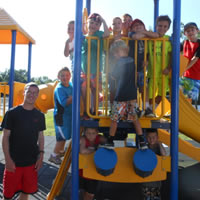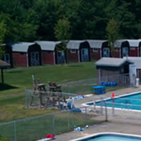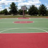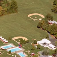 For you B-ballers, we have four courts: one regulation, two with adjustable 8ft baskets and, one for the little guys. All four of our basketball courts are covered with a “Sport Court” surface, allowing for play even when the grounds are wet!